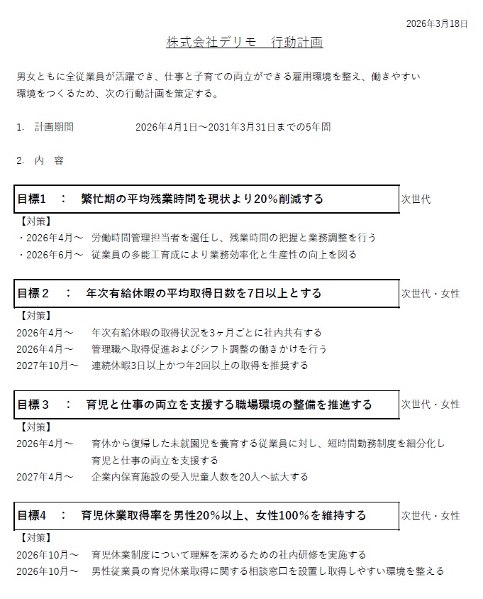 次世代法及び、女性活躍推進法に基づく一般事業主行動計画